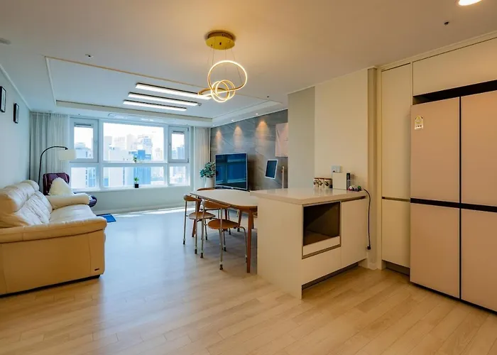 Das 4-Sterne-Hotel 최고주거지역3Min 150M To The Haeundae Beach Newly Opened Brand-New Apt Busan liegt nur 30 km vom Flughafen Gimhae entfernt und bietet seinen Gästen einen Shuttleservice.